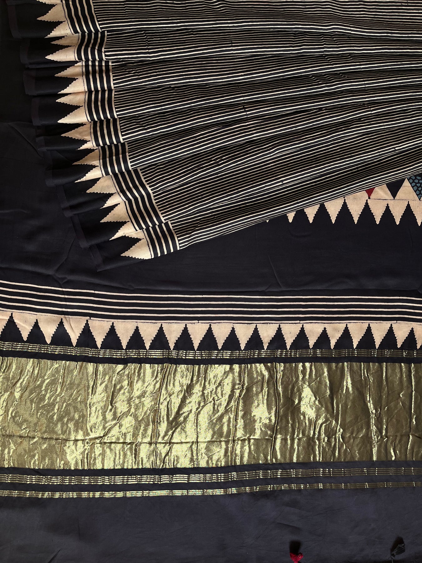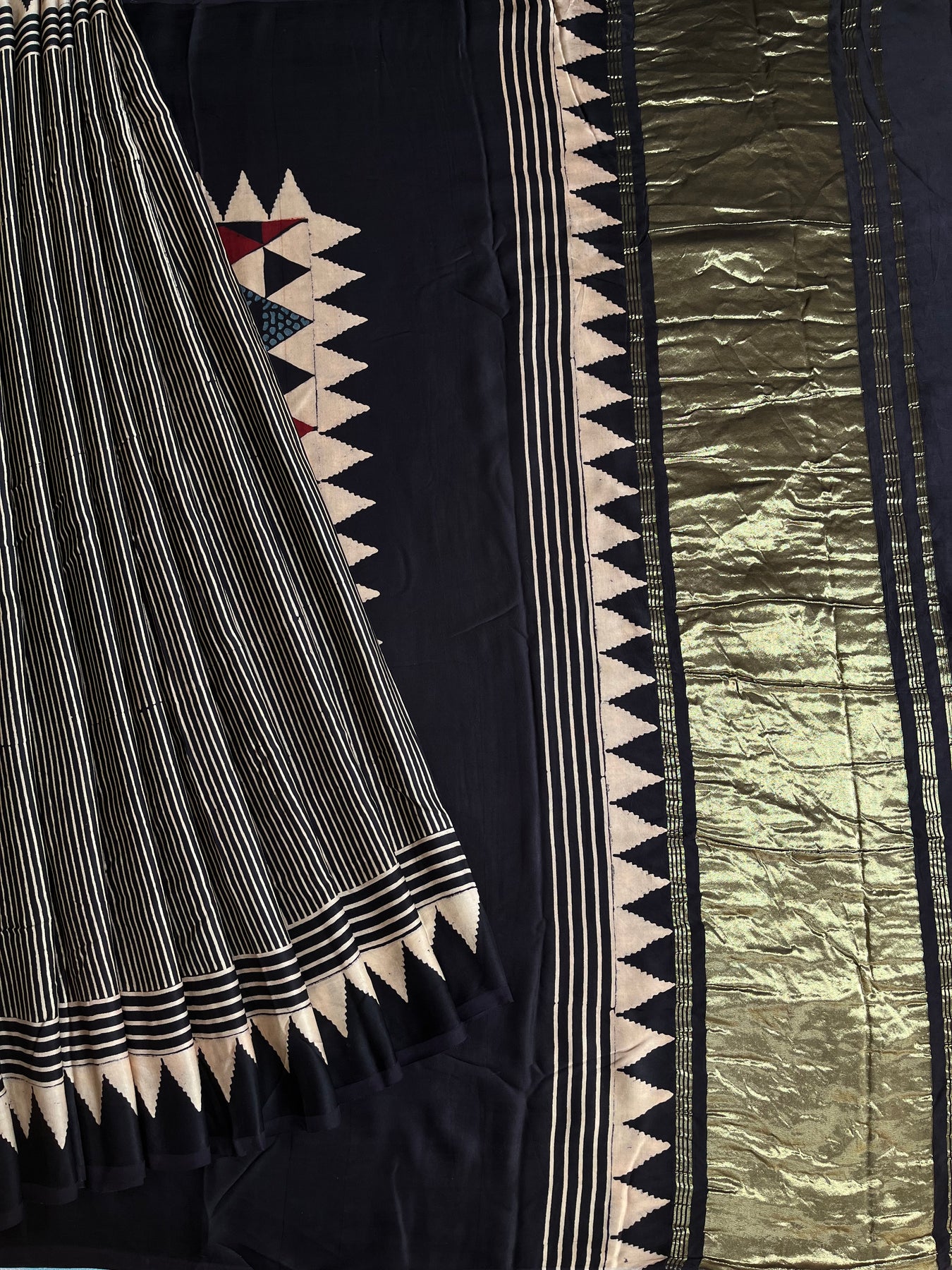 NALINI: HANDBLOCK AJRAKH MODAL SILK SAREE WITH TISSUE PALLU