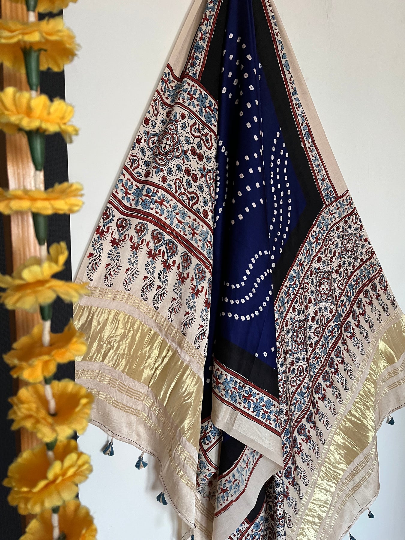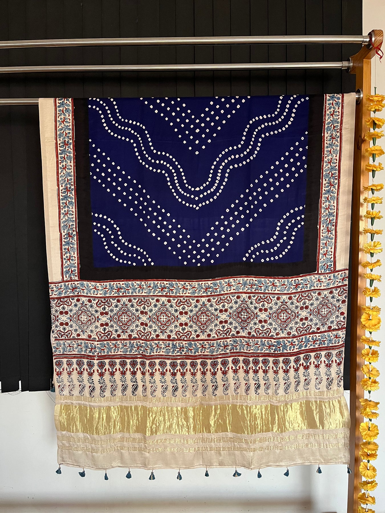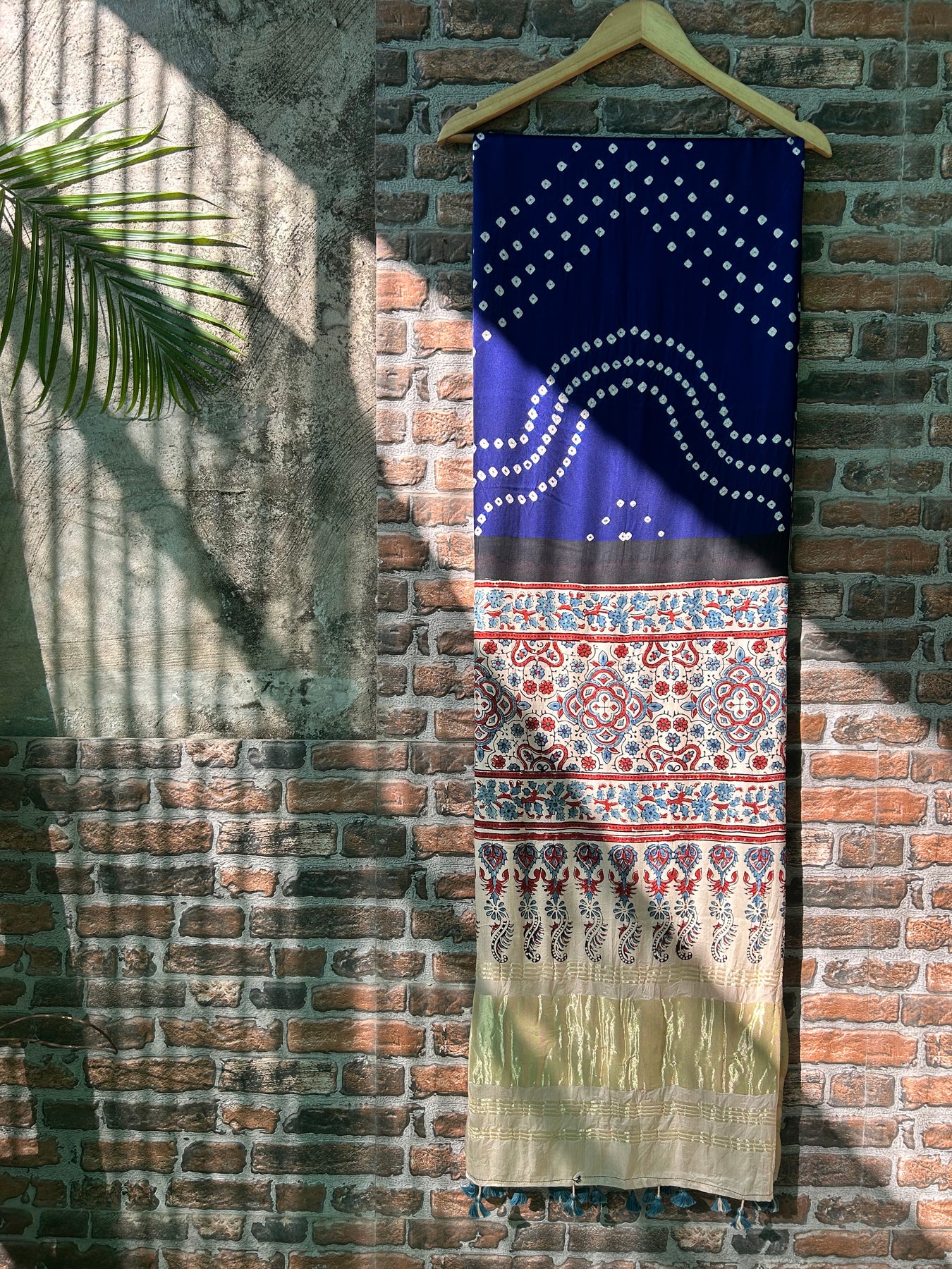 ANSI : HANDMADE BANDHANI AJRAKH MODAL SILK DUPATTA WITH TISSUE