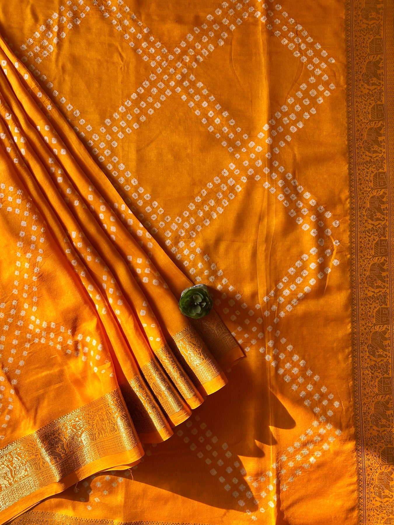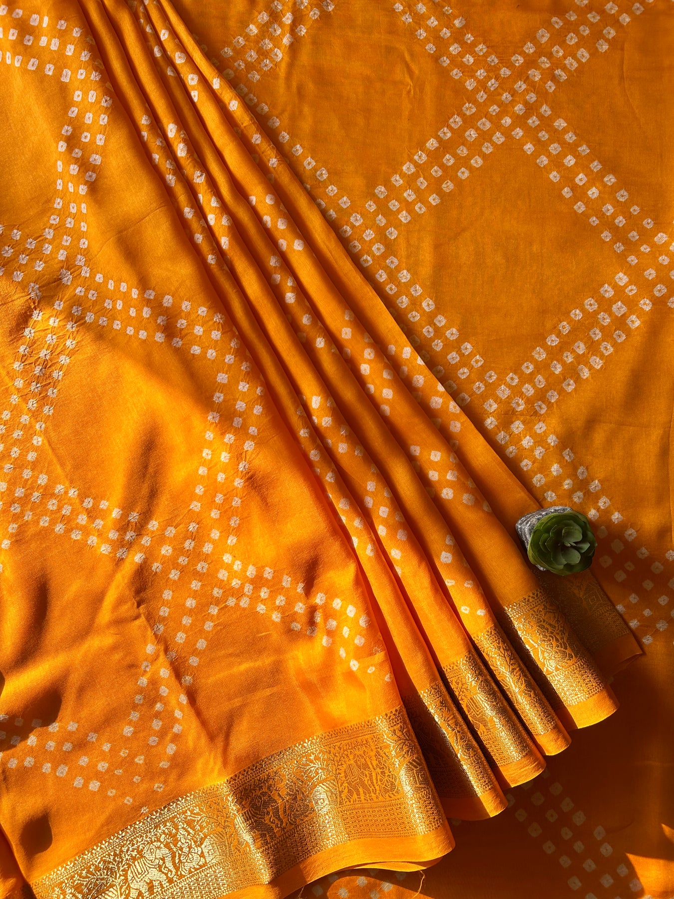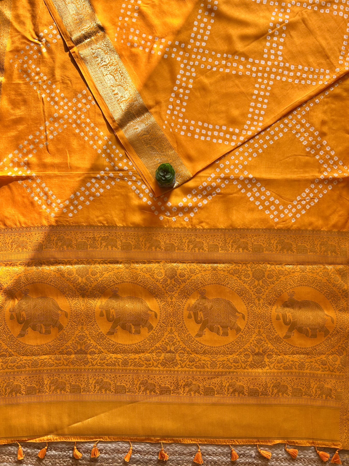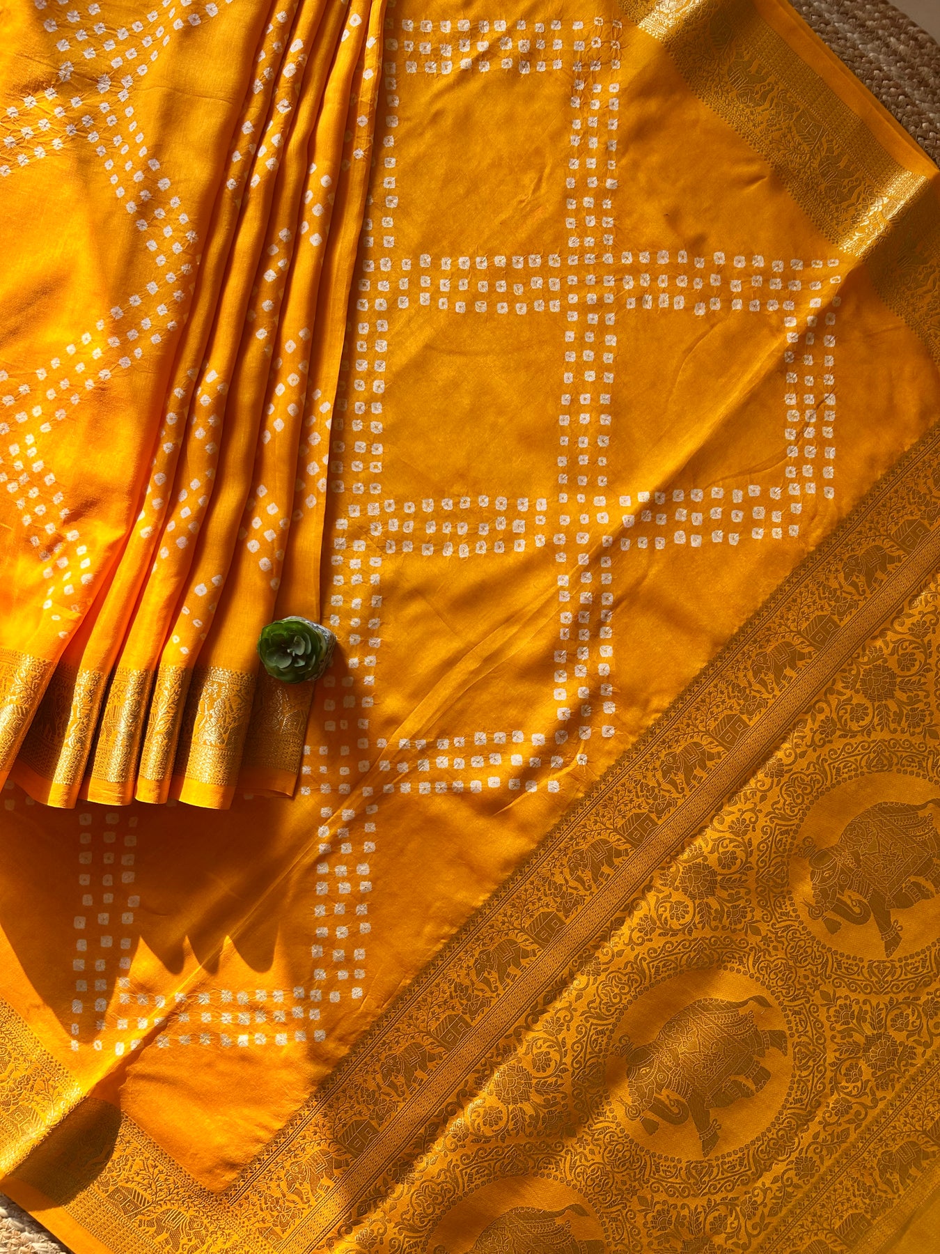 GENDA PHOOL: HALDI, HANDMADE BANDHANI DOLA SILK SAREE