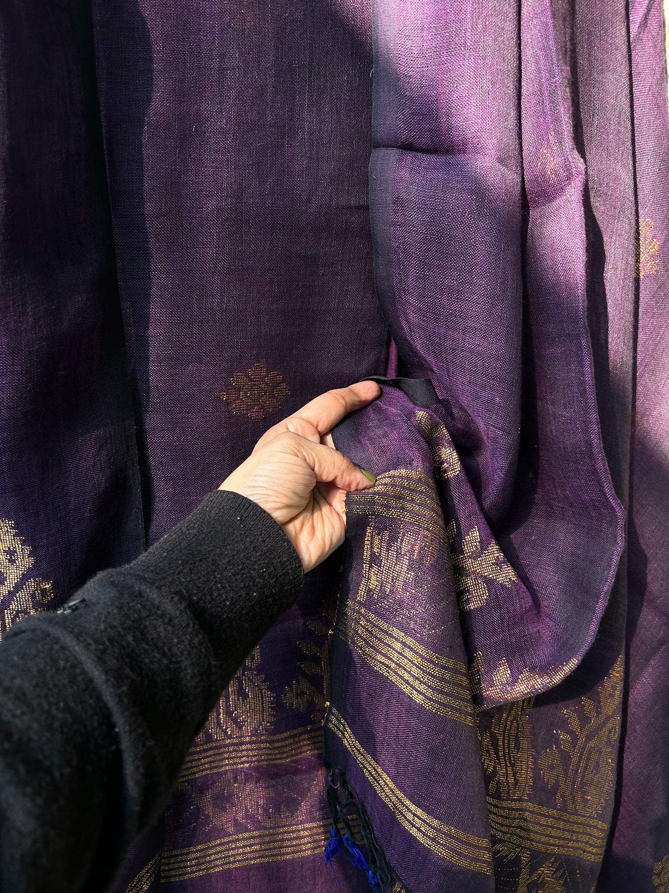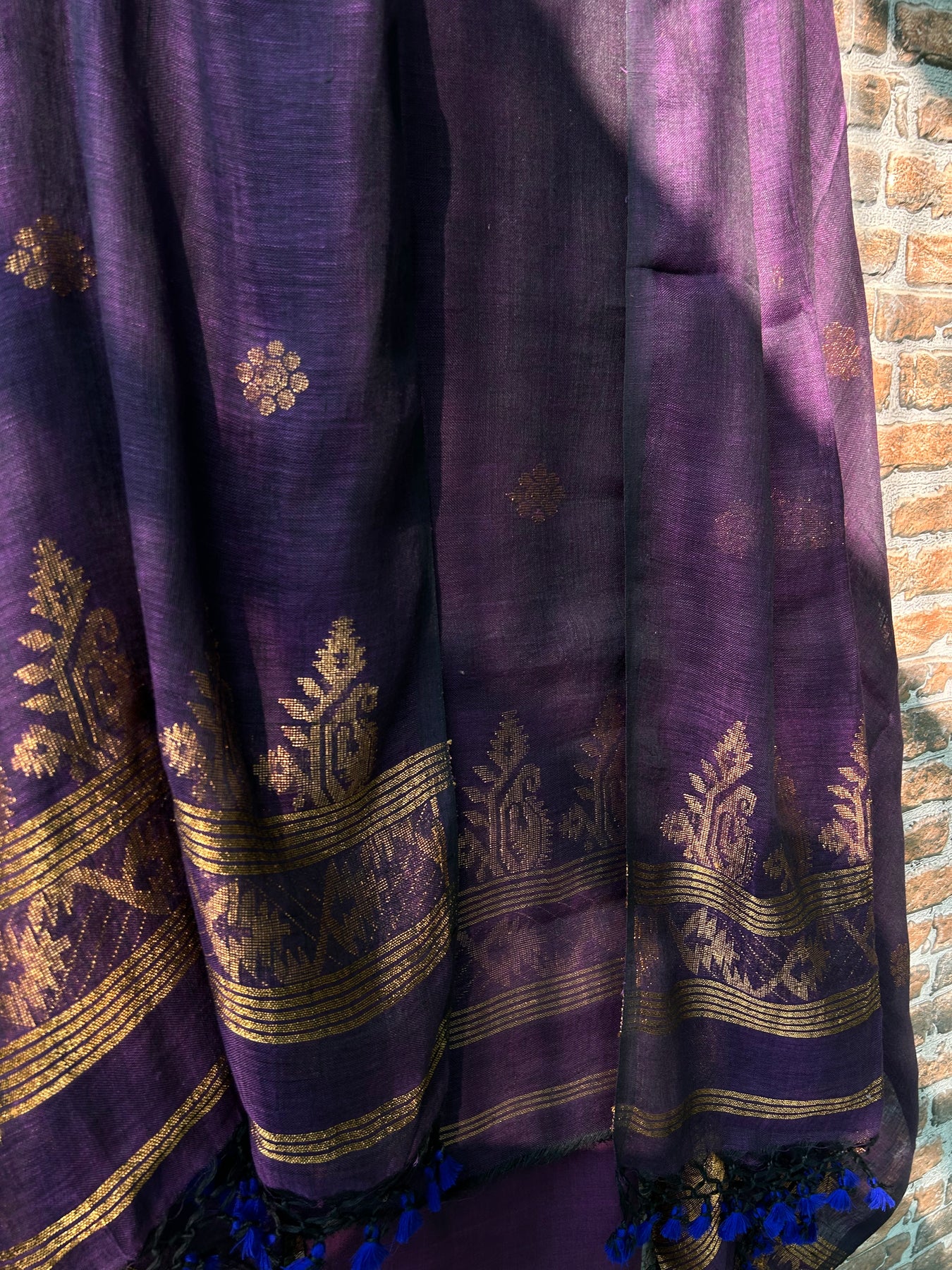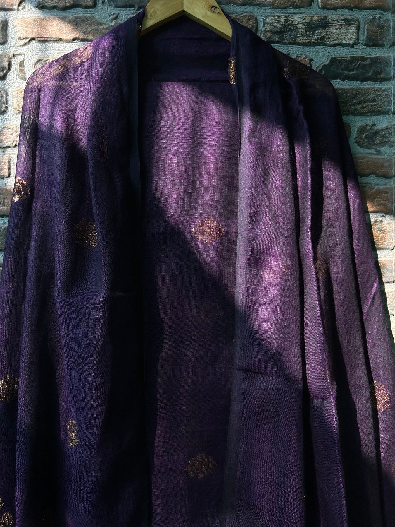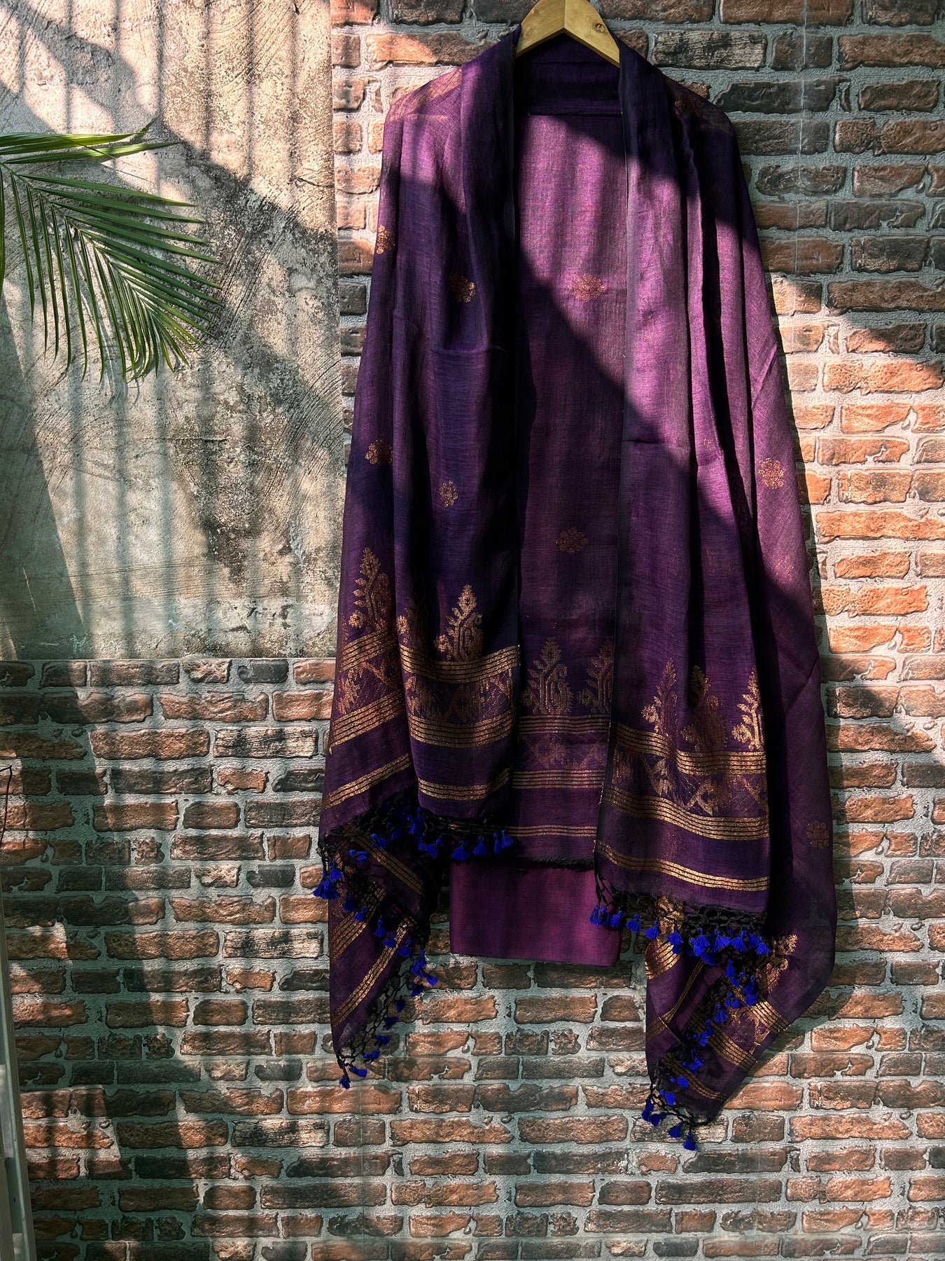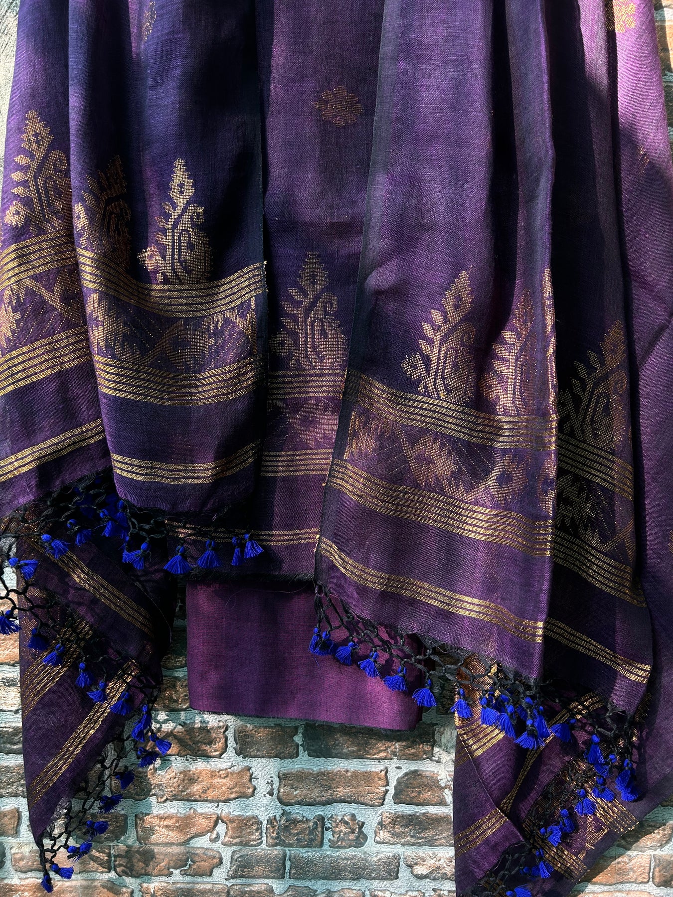 JAMUNI : HANDLOOM JAMDANI PURE LINEN COTTON 3 PIECE SUIT SET.
