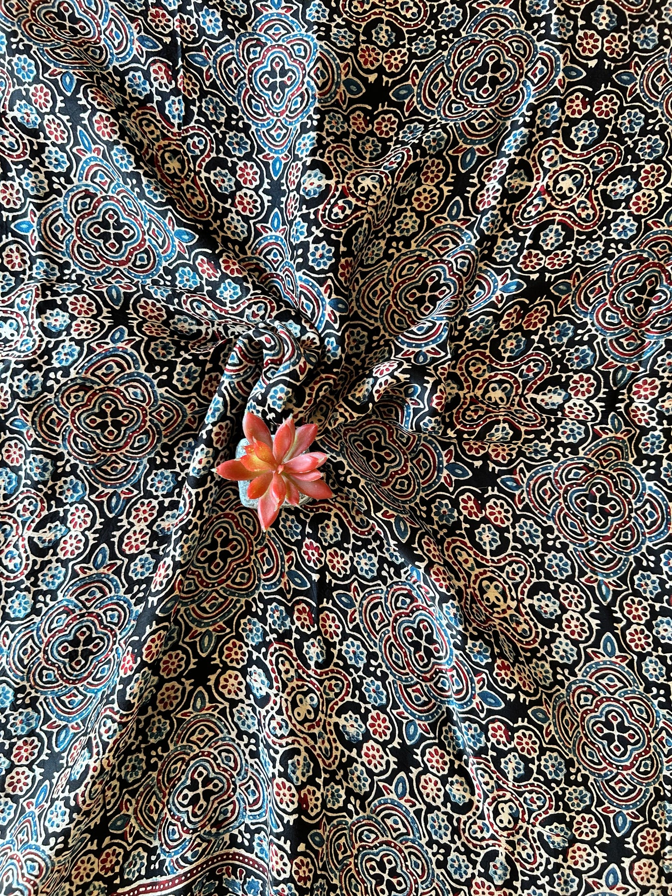 Handblock ajrakh print and designer bandhni craft with natural colors. |