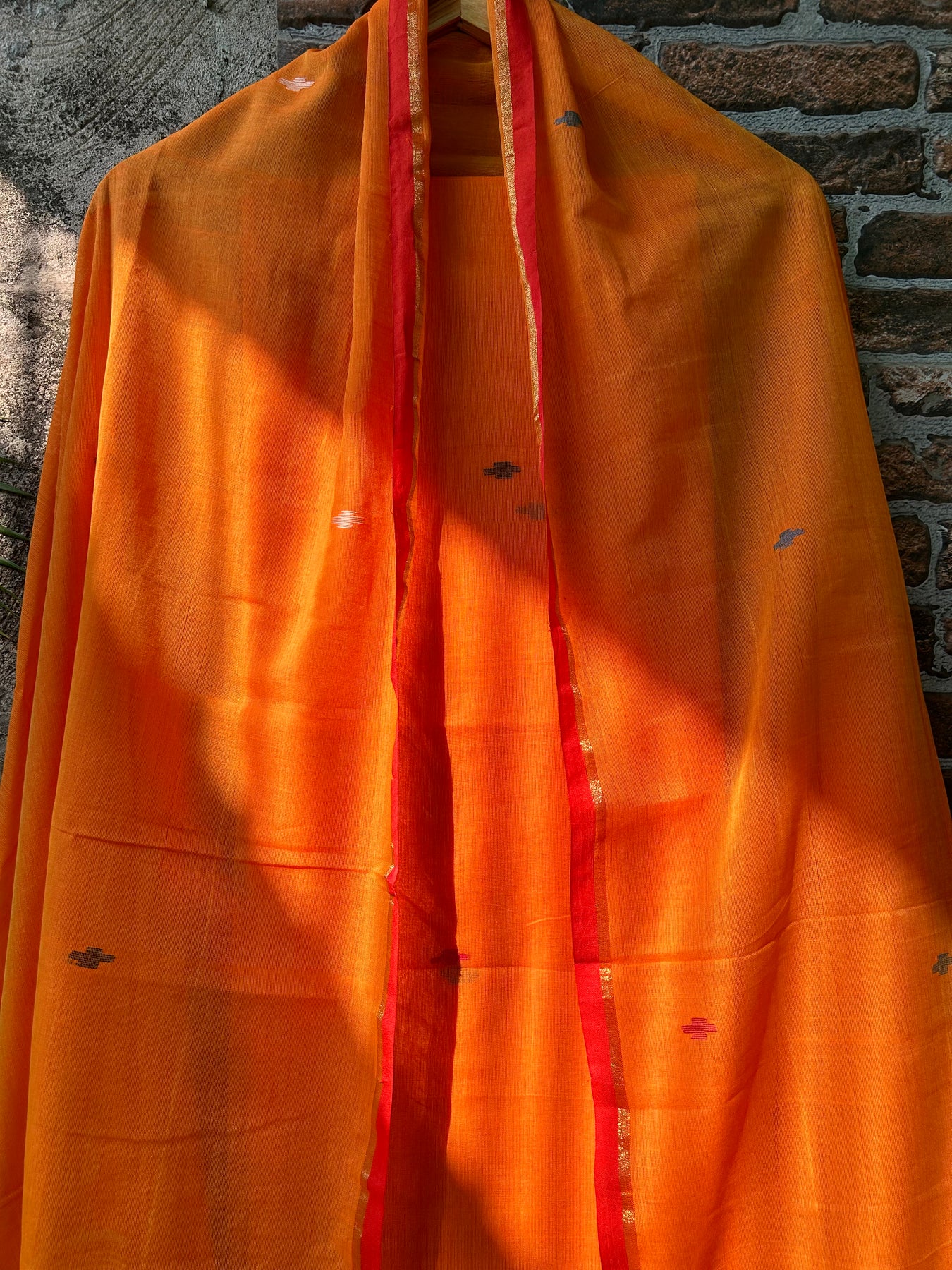 LATIKA: HANDLOOM JAMDANI PURE MULMUL COTTON 3 PIECE SUIT SETWITH WEAVING BOOTAS
