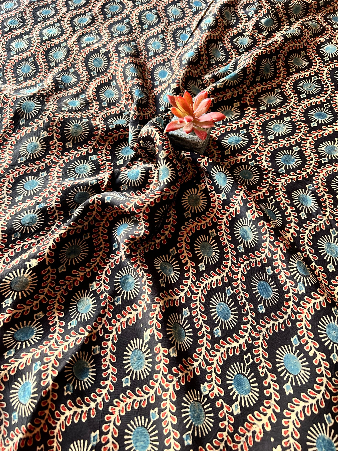 - Slight irregularities in motifs, patches, and stains of dyes is an inherent property of the handmade product. these things make them one of a kind.