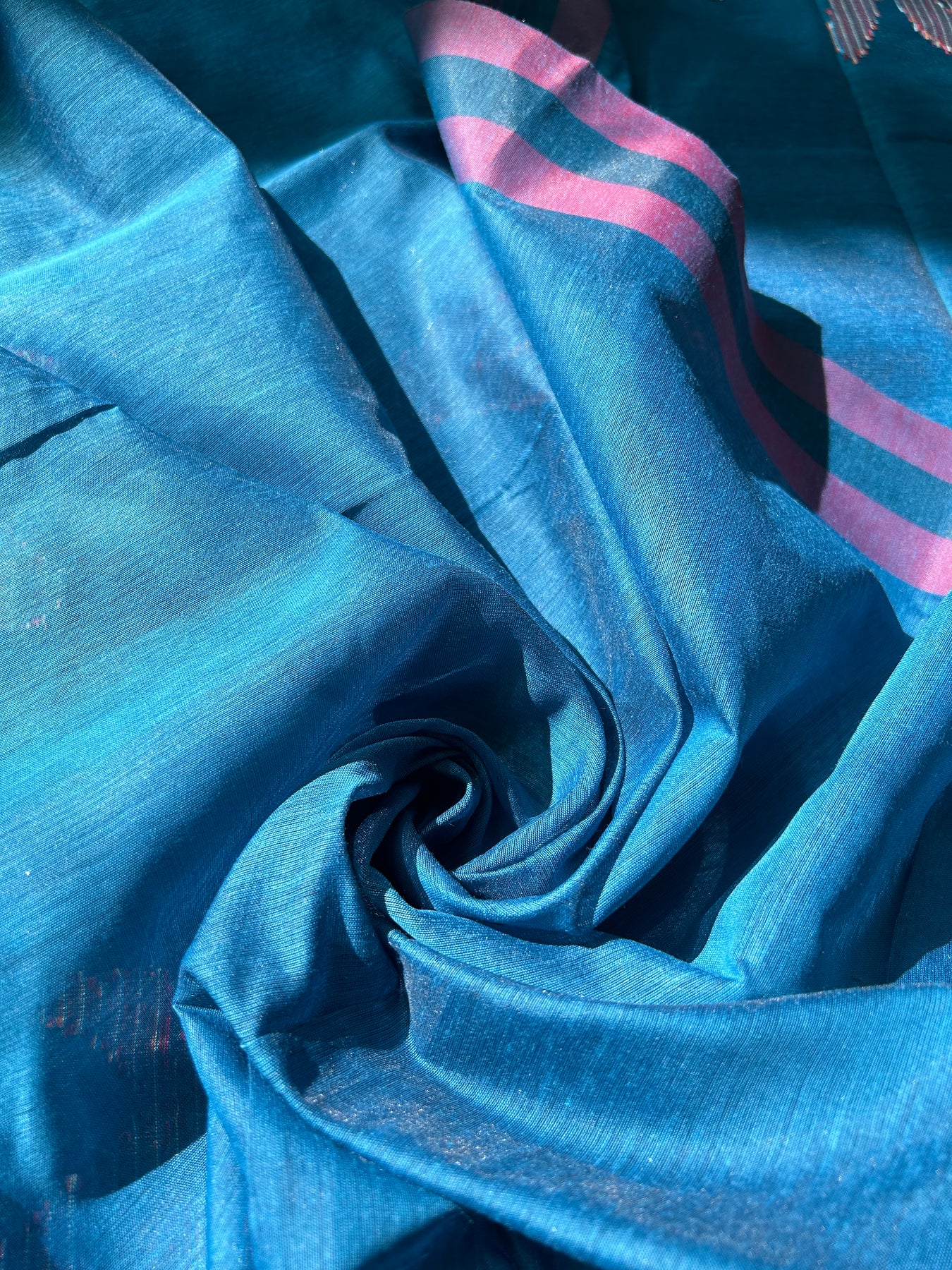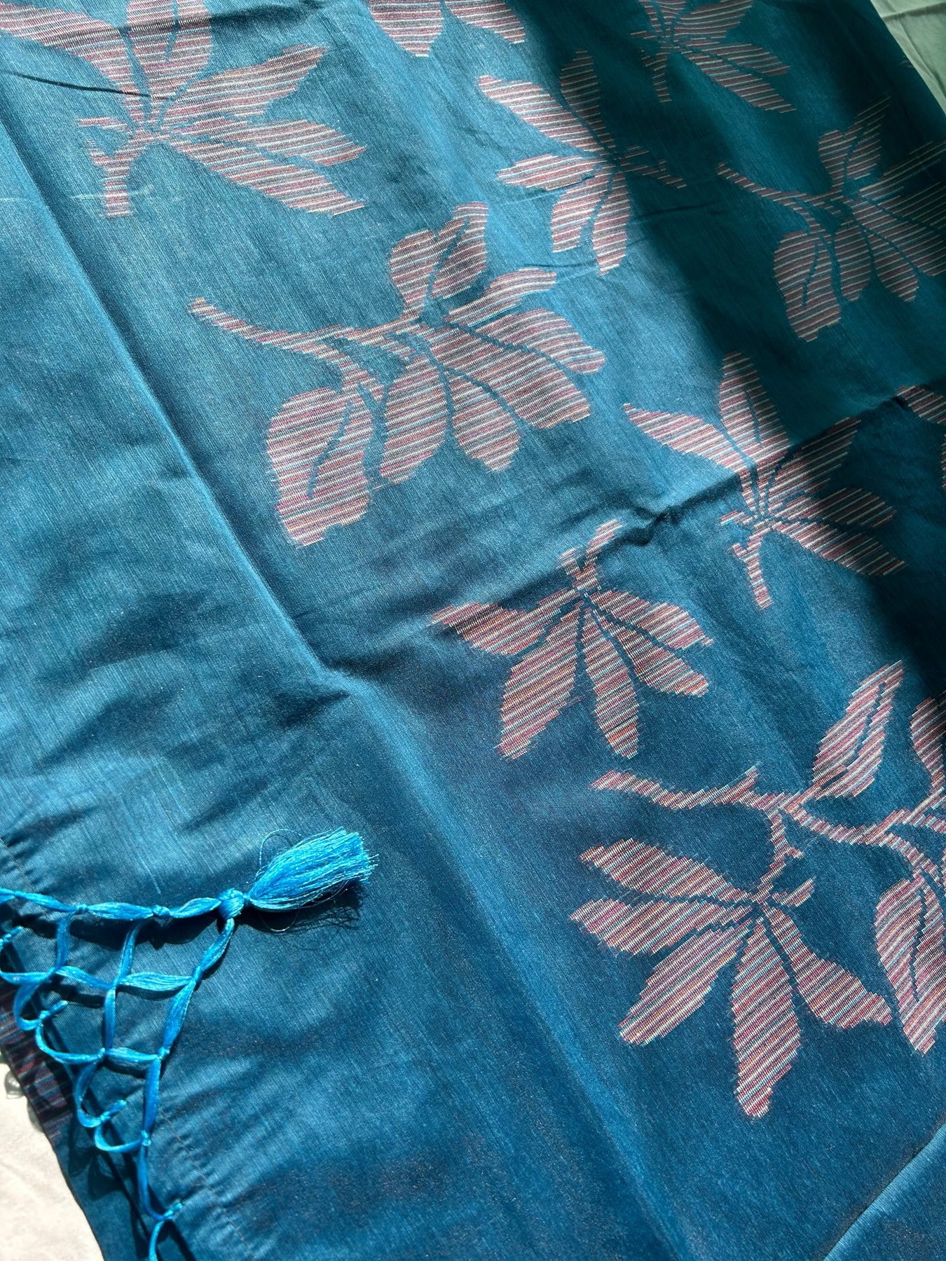 MRNALINI: INDIGO PARTYWEAR PURE COTTON-EXCEL JAMDANI INSPIRED SAREE