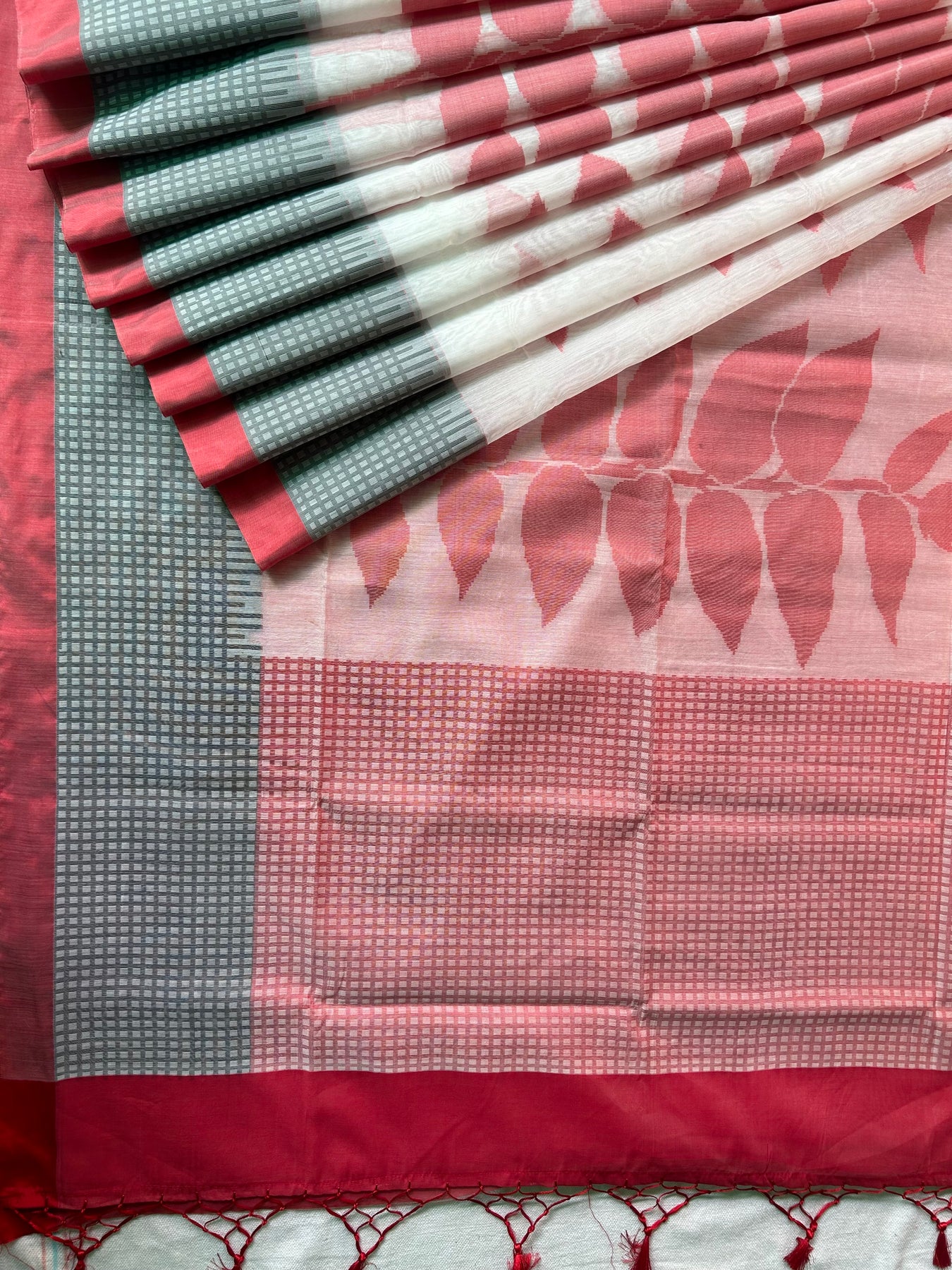 PARINITA : DURGA PUJA FESTIVE PURE COTTON-EXCEL JAMDANI INSPIRED SAREE